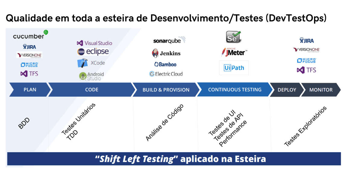 Somos especialistas em testes de sistemas, incluindo testes automatizados e a criação de esteiras DevTestOps, facilitando Integração Contínua (CI) e Entrega Contínua (CD). Nossa abordagem garante que suas aplicações sejam rigorosamente testadas em todas as fases do desenvolvimento, identificando e corrigindo falhas rapidamente. Implementamos soluções que otimizam o ciclo de desenvolvimento, assegurando entregas contínuas e de alta qualidade. Com nossa expertise, promovemos a eficiência e a confiabilidade dos seus sistemas, garantindo que estejam sempre prontos para atender às demandas do mercado. Como resultado, as organizações que adotam essa metodologia frequentemente experimentam lançamentos de software mais rápidos, menor número de falhas e soluções de problemas mais eficientes.